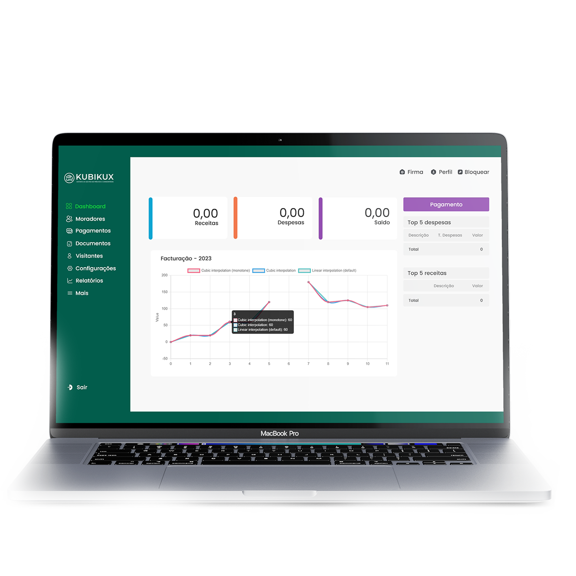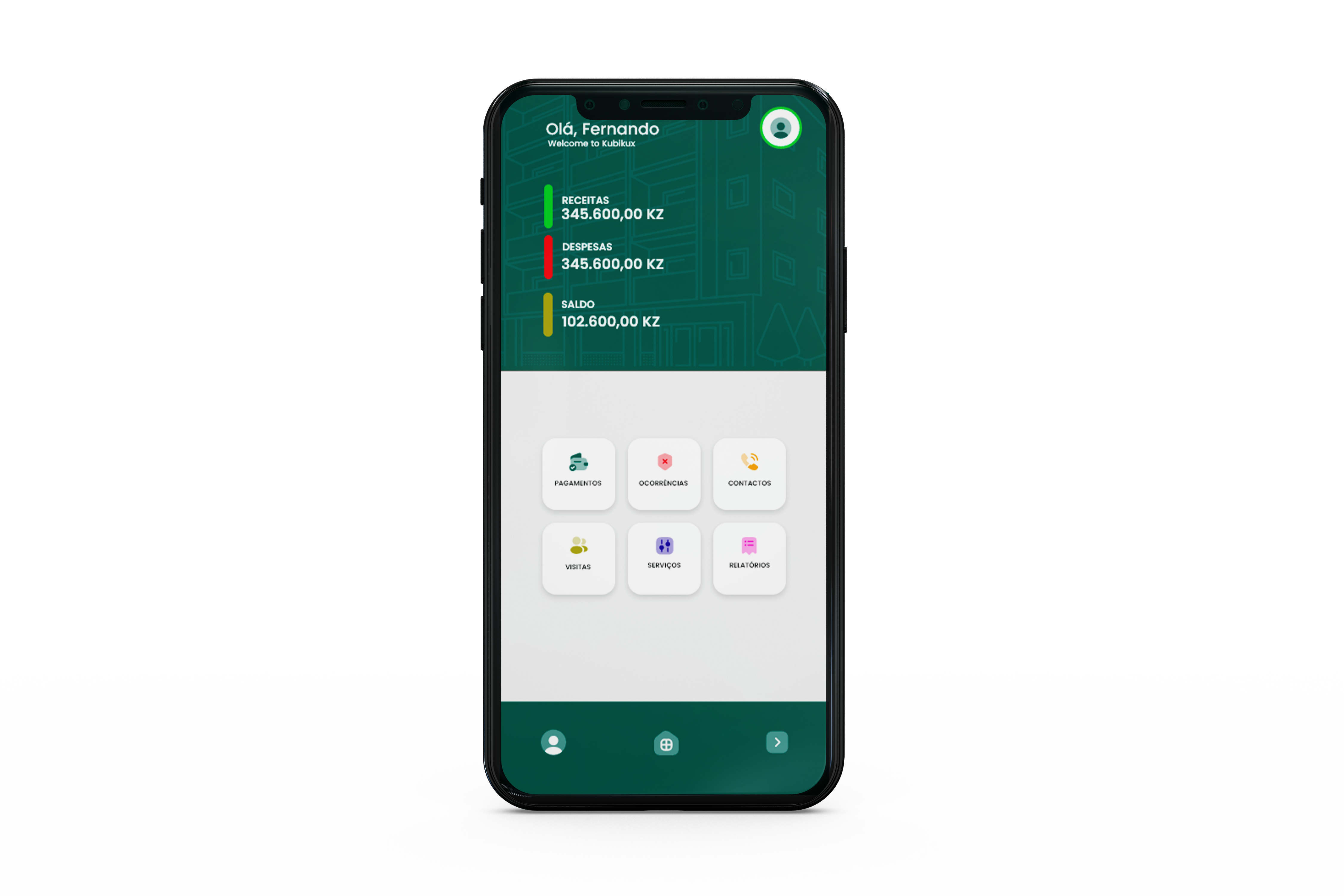 - Relatórios (Pagamentos, Despesas, Visitantes, Extrato bancário).